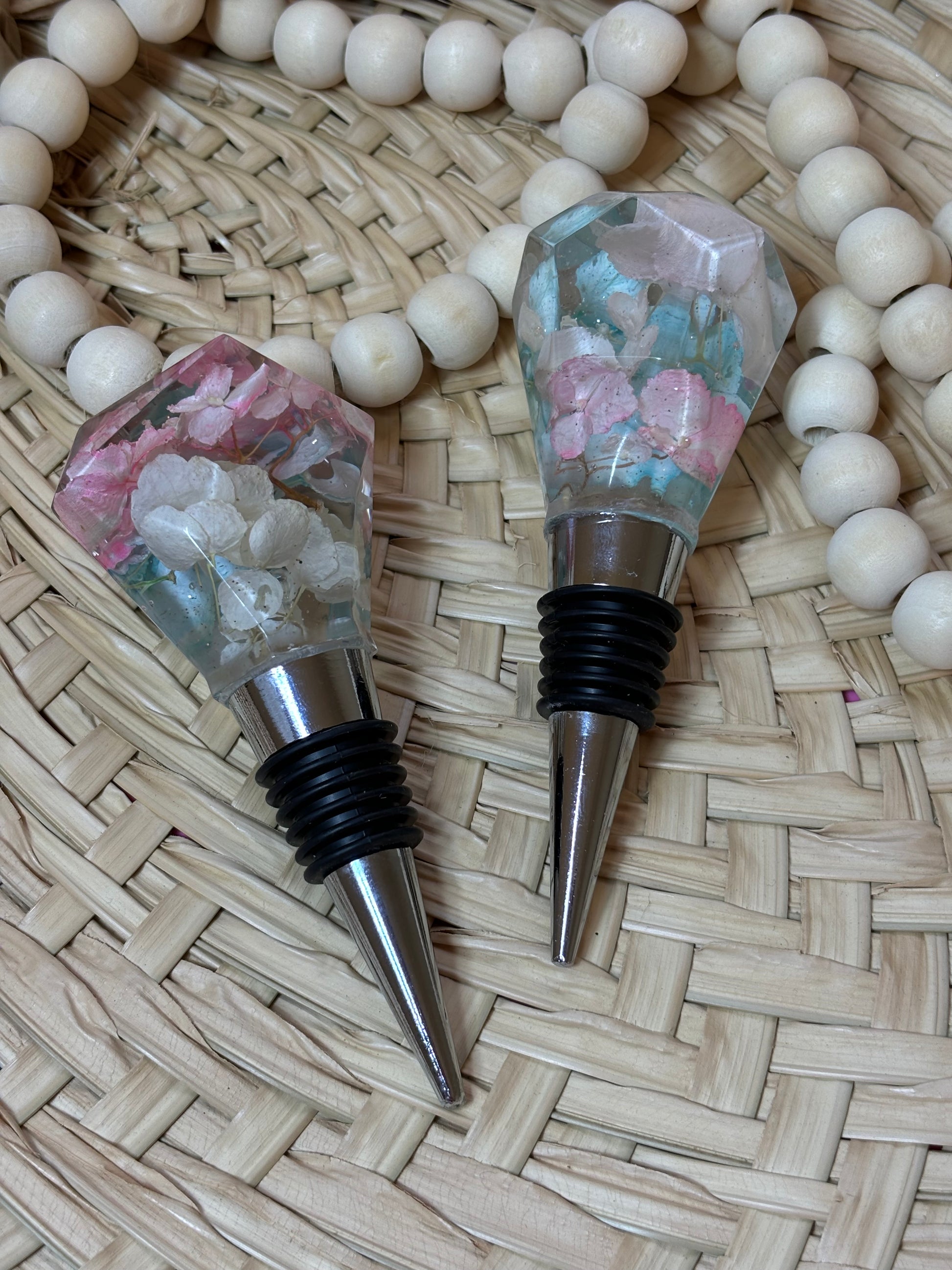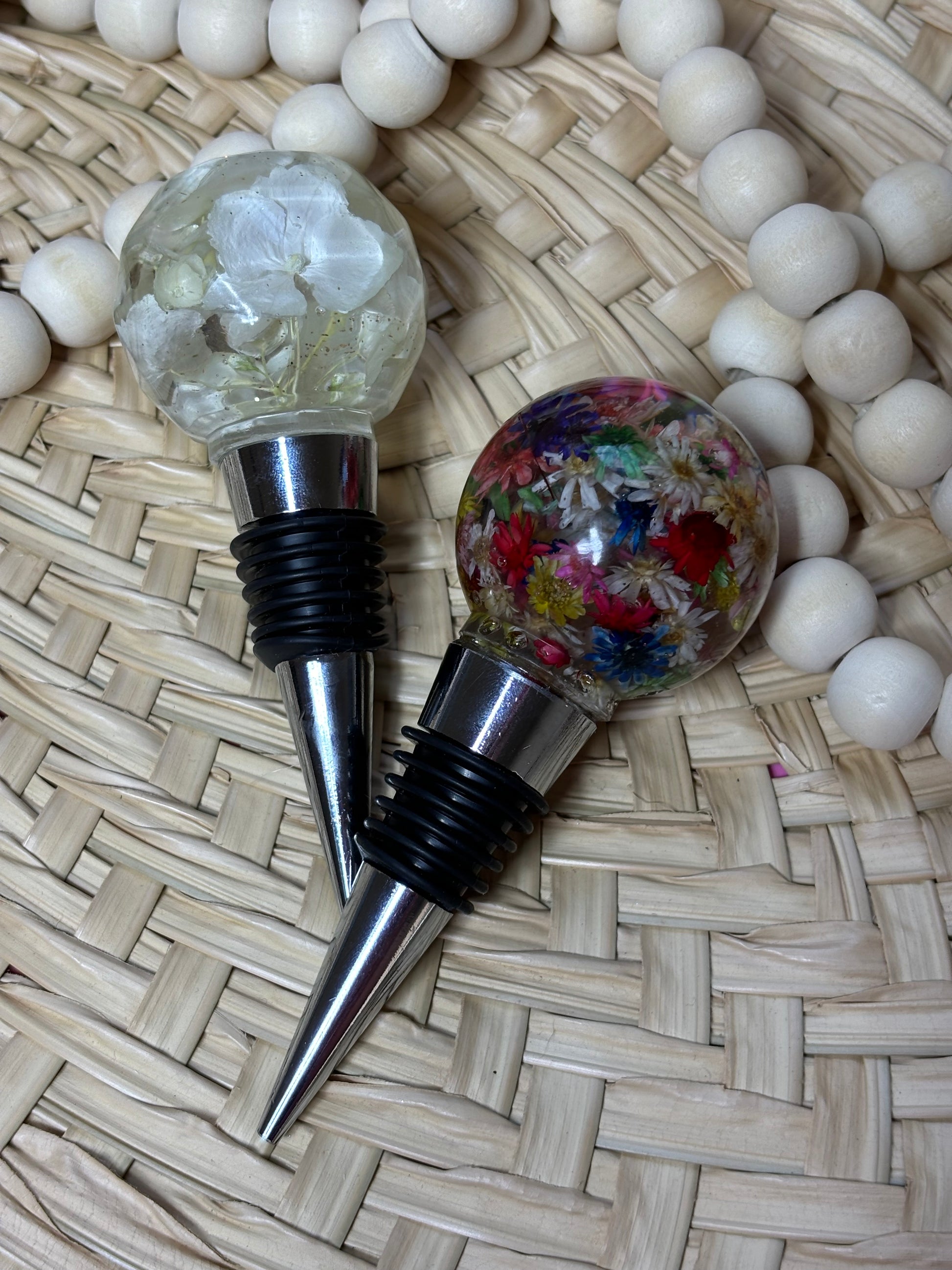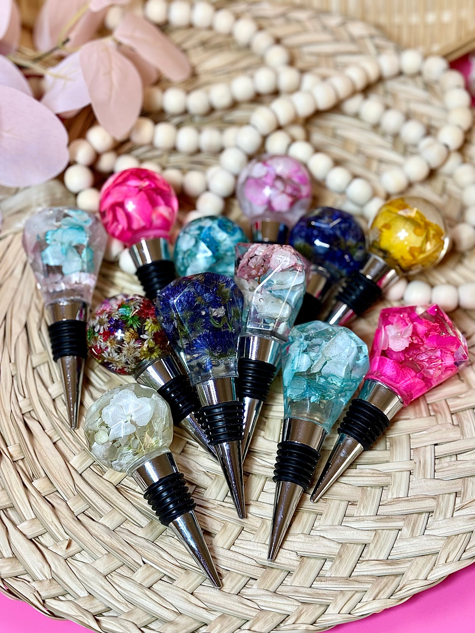 Beautiful handmade floral wine bottle stopper. Made with real dried flowers, resin and glitter. Great unique hostess gift or wine lovers gift add with a bottle of wine and give to your bestie or fave couple.