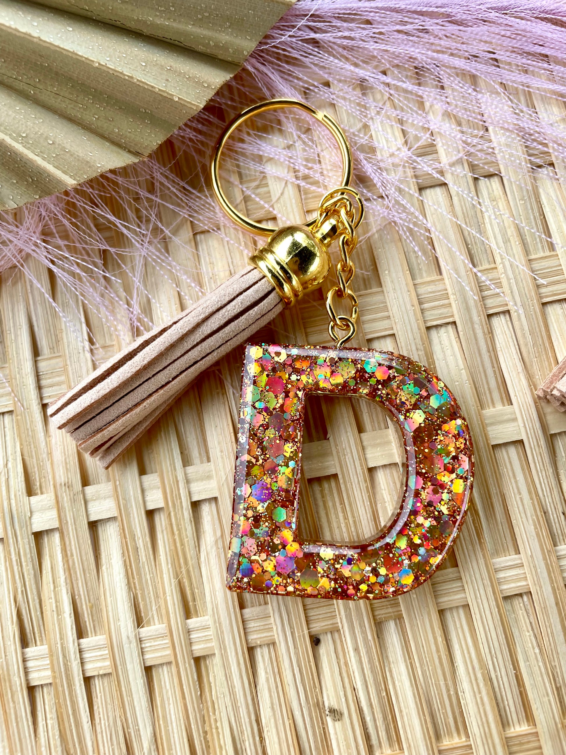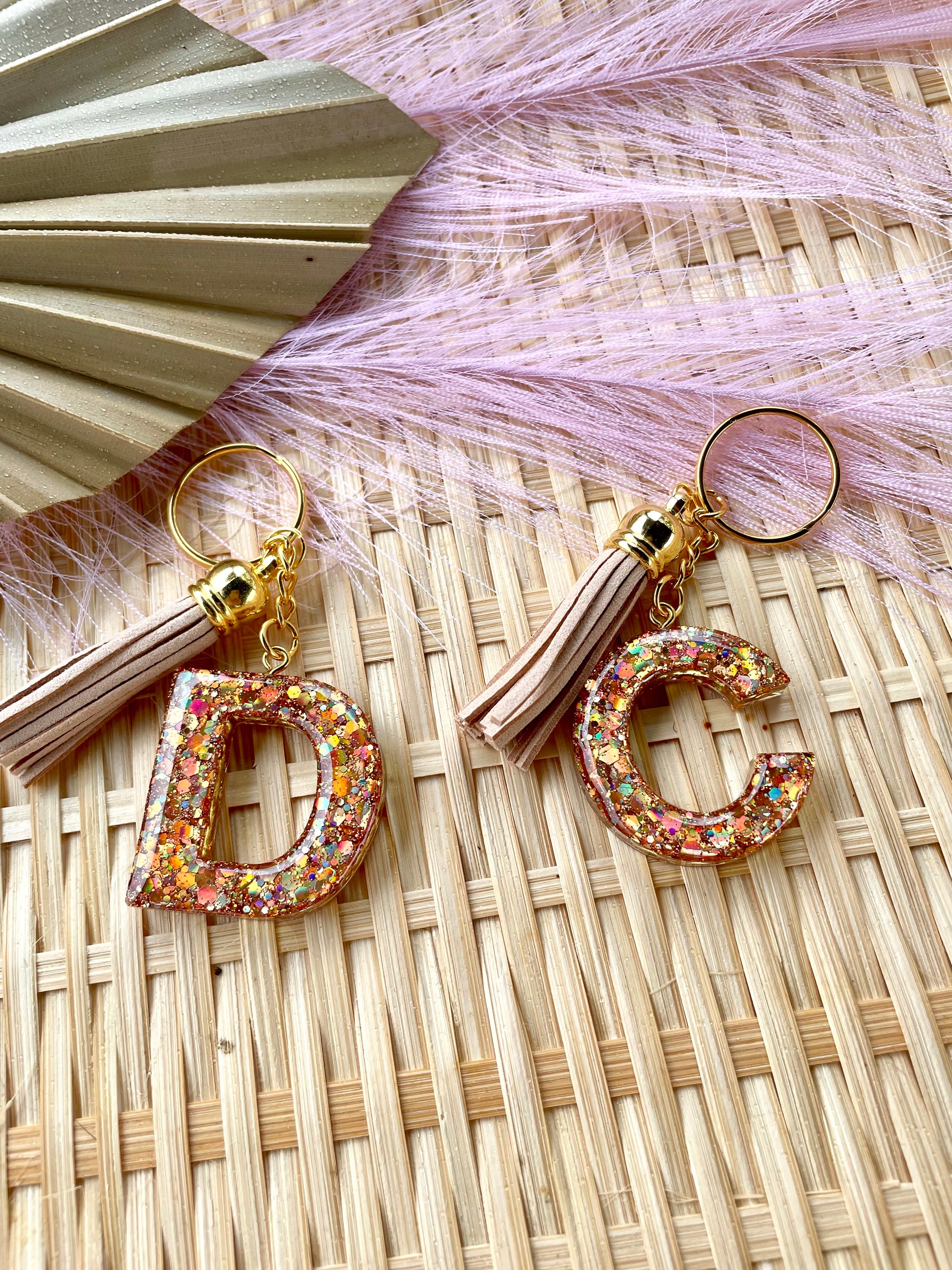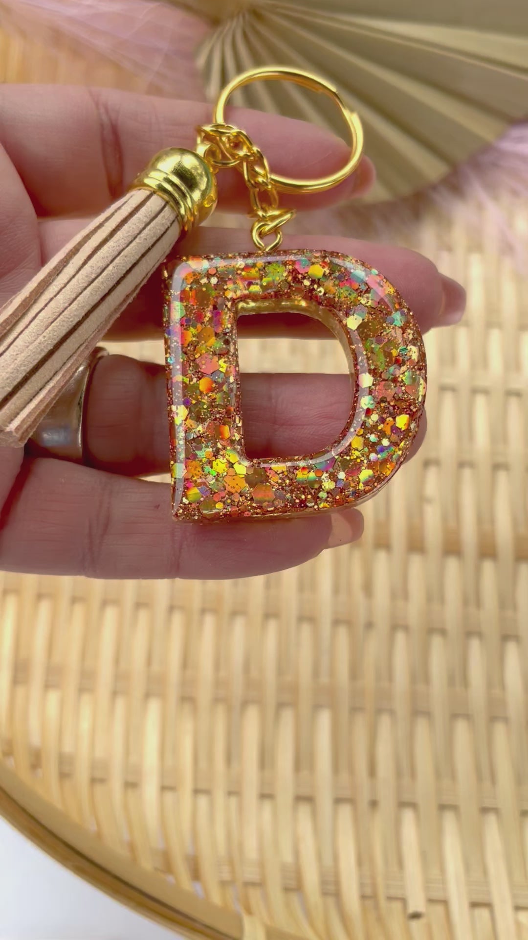 Sparkly gold holographic glitter keychain. Can be used as a cute bag charm on a lunch bag or your workout bag. Cute bestie, Mom, or teen girl gifts.