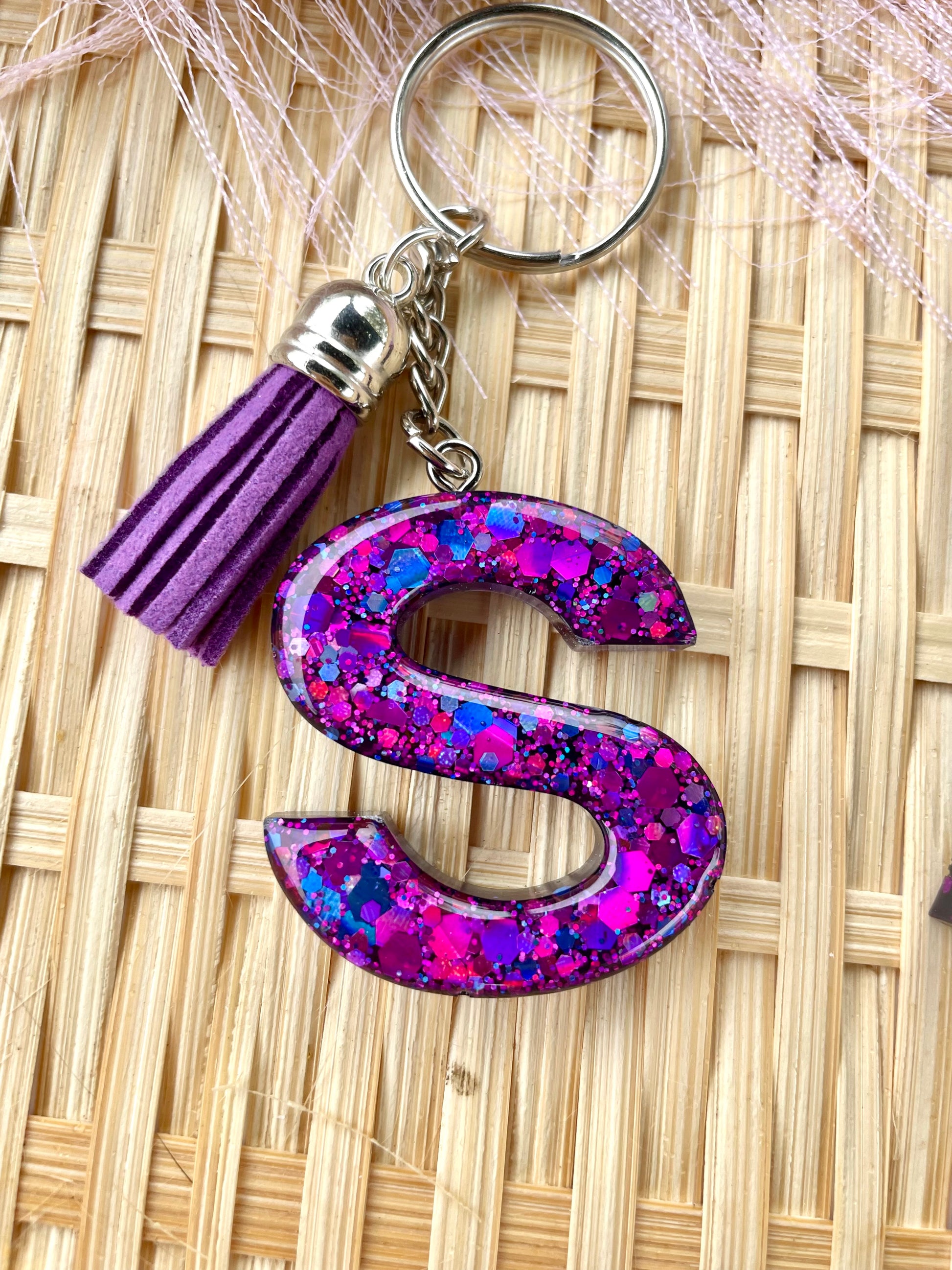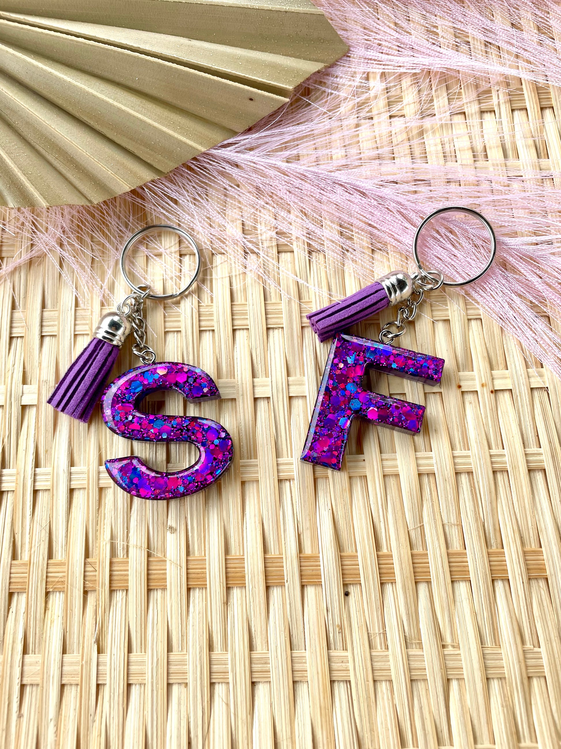 Sparkly purple holographic glitter keychain. Can be used as a cute bag charm on a lunch bag or your workout bag. Cute bestie, Mom, or teen girl gifts.